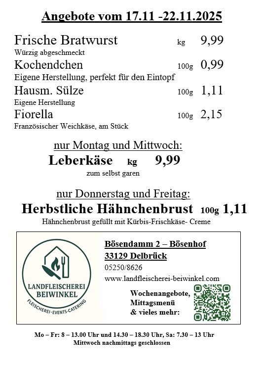 Mit der Landfleischerei Beiwinkel setzt er seine Philosophie fort: ehrliche Produkte aus eigener Herstellung, handwerklich verarbeitet und aus besten Zutaten der Region. Besonders die enge Zusammenarbeit mit dem Hof Hagenheide garantiert höchste Qualität und nachhaltige Tierhaltung – für Fleisch, das mit gutem Gewissen und vollem Geschmack überzeugt.